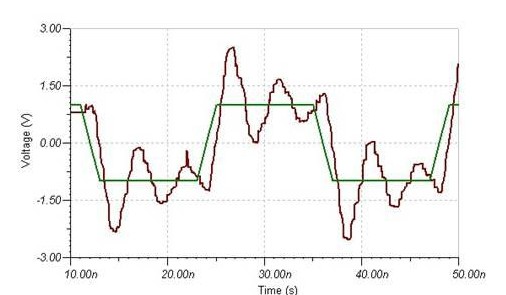 光在传输介质发生改变时会发生反射,电信号也一样。反射会带来什么呢,您的信号可能就会成这样。