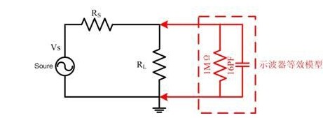 相信大家都有这种经历,调试一个有问题的电路,想看看波形,结果接上探头电路就正常了,拿开探头电路就又出问题。这就是负载效应引起的。示波器在1MΩ阻抗模式下的等效模型比较复杂,大致可以等效成是1MΩ和一个十几pF的电容并联在一起的形式。